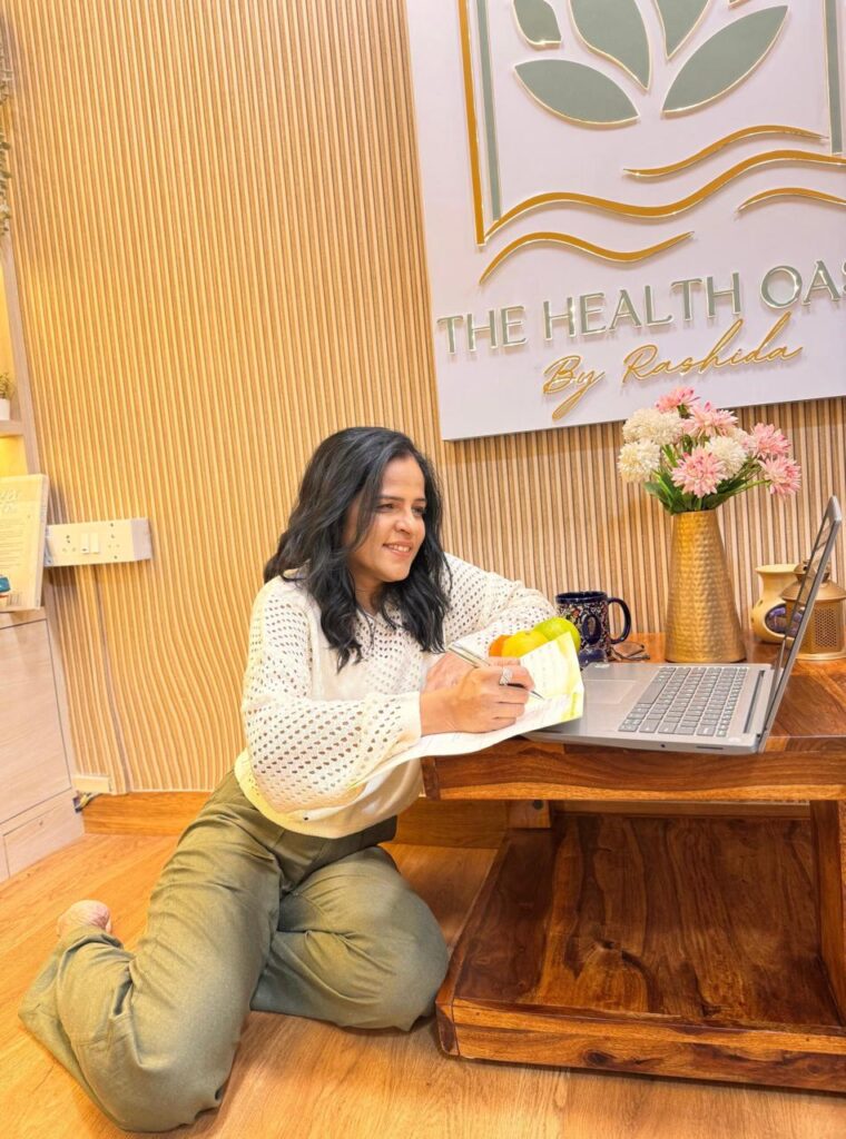 I’m Rashida Vandeliwala. For more than two decades, I’ve worked as a clinical dietitian, therapeutic yoga consultant, and mind-behavior coach.